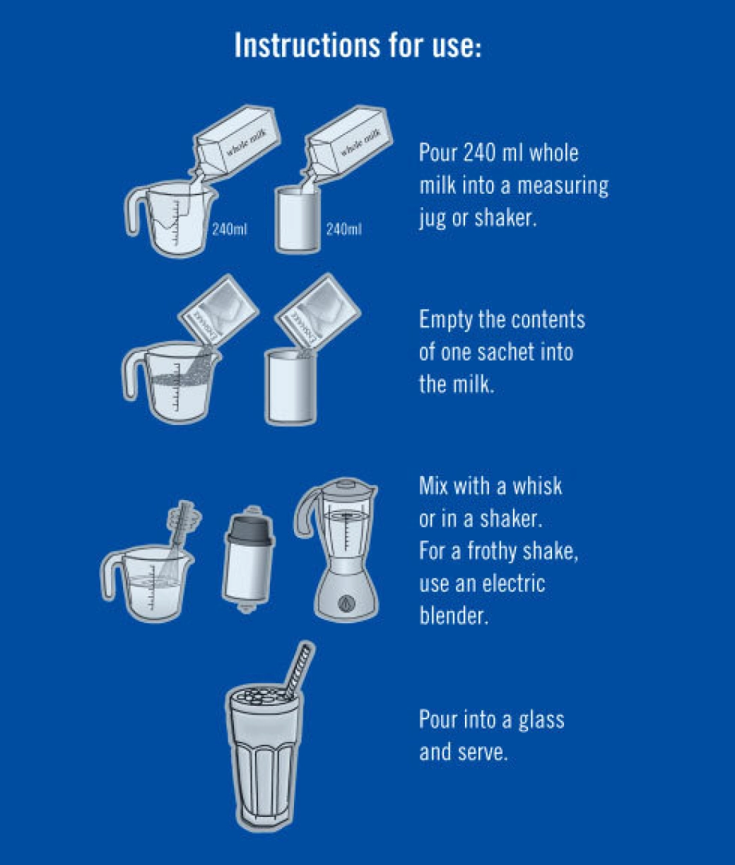 **When prepared as directed (1 x 96.5g sachet reconstituted with 240ml of whole milk) provides a serving size of 310ml.